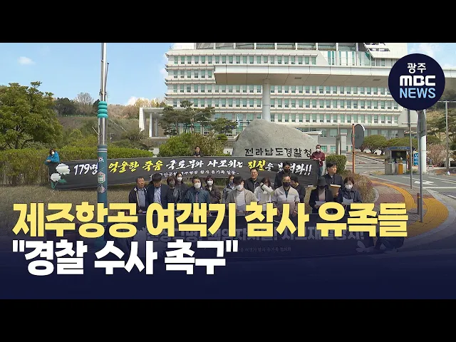 1229 제주항공 여객기 참사 유가족들이 경찰 수사를 촉구하면서 오늘(15) 전남경찰청을 항의 방문했습니다.유족들은 지난달 전남 경찰의 1차 수사 브리핑 이후 수사 진행 상황에 대한보고나 위법 사항에 대한 법적 조치가 전혀 이뤄지지 않고 있다면서 진행 경과와 확보된 조사 자료, 수사 결과에 따른 법적·행정적 조치 계...