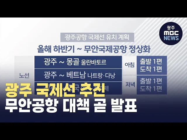 (앵커)여행업계의 어려움이 커지면서광주시가 광주공항에 임시로 국제선을 띄우려 하고 있지만시설 준비나 무안군의 반대 등난관이 만만치 않습니다.또 국토부가 이달 말까지무안공항 운영 대책을 내놓겠다고 한 것도변수가 될 것으로 보입니다.김초롱 기자의 보도입니다.(기자)광주시는 최근 국토교통부에 광주공항 임시 ...