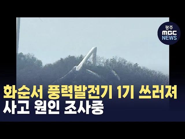 오늘(21일) 새벽 2시 50분쯤, 화순군 도암면 우추리 화학산에서 풍력발전기 1기가 쓰러지는 사고가 발생했습니다.사고가 일어난 곳은 풍력발전기 11기가 모여있는 발전단지로,인명 피해나 인근 민가 등에 피해는 발생하지 않았습니다.사고 발전기는 4.7MW급으로 높이 110미터에 무게 20톤 크기의 날개가 3개 장착된 형태입...