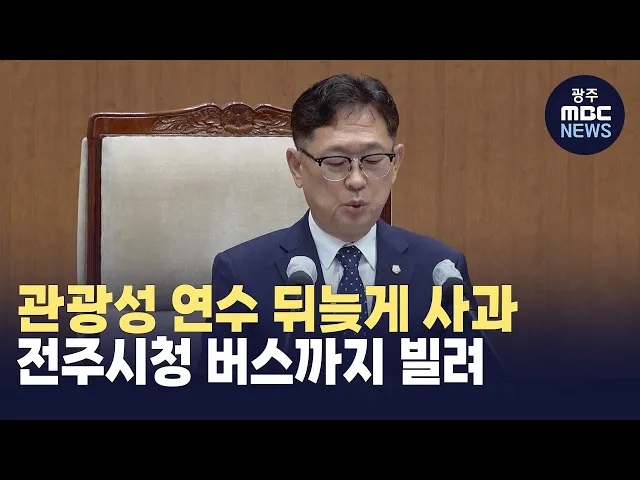 (앵커)지난달 산불 재난과 탄핵 정국 속 관광성 연수를 떠나 비판을 받았던 전주시의회 행정위원장이 20일 만에 고개를 숙였습니다.꼭 필요한 연수였고, 의원들이 사비로 비용을 부담했다고 해명했지만의회 사무국 직원 5명이 출장을 내야 했고, 전주시청 버스도 2박 3일간 빌려 썼습니다.전주문화방송 전재웅 기자입니다. ...