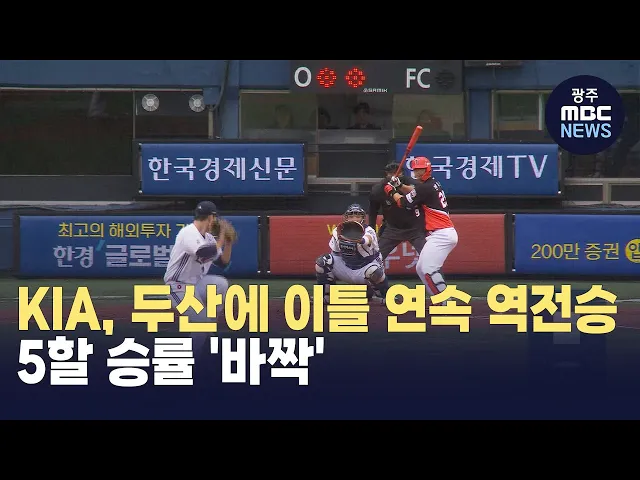 KIA, 두산에 이틀 연속 역전승 .. 5할 승률 '바짝'