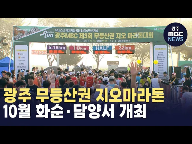 광주 무등산권 지오마라톤대회가 오는 10월 11일 화순군과 담양군 일원에서 개최됩니다.금호화순리조트에서 담양 인암삼거리, 화순 다곡삼거리 등을 거쳐 돌아가는최장 30km 코스 등 마라톤 4개 종목과2km 걷기 종목 등이 있습니다.이번 대회는 무등산권 유네스코 세계지질공원 인증 7주년을 기념해 열리며,오는 28일부터 ...
