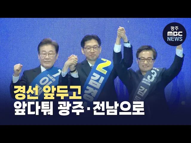 (앵커)조기대선까지 이제 40여일 남았습니다.내일(23)부터 나흘간더불어민주당 대선 후보 선출을 위한 호남권 경선이 치러지는데요.오늘(22) 김경수 후보를 시작으로 세 후보 모두 호남 공약을 발표하며, 전통 지지층 공략에 나섰습니다.주현정기자입니다.(기자)민주당 호남권 경선을 하루 앞두고 광주에 온 김경수 후보는 ...