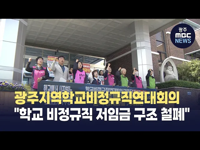 광주지역학교비정규직연대회의는 오늘(24) 기자회견을 열고 "비정규직 저임금 구조를 철폐하라"며 단식투쟁에 들어간다고 밝혔습니다. 단체는 "시대 변화에 따라 학교 기능은 학습을 넘어 돌봄과 방과후 등 교육 복지로 확장됐지만, 정작 이 일을 하는 학교 비정규직들의 처우는 개선되지 않고 있다"고 말했습니다. 그러면...