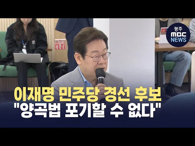 정부의 거부권 행사로 폐기된양곡관리법 개정안에 대해 이재명 더불어민주당 경선 후보가포기할 수 없다는 입장을 밝혔습니다. 이재명 후보는 오늘(25일) 오전 나주 전남농업기술원을 찾아, "일시적인 생산 과잉 문제로 쌀 생산 기반이 파괴되지 않게 하는 게 정부가 할 일"이라며 이같이 말했습니다. 또 "산지에서는 농산...