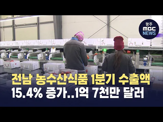올해 1분기 전남 농수산식품 수출액이 지난해 같은 기간보다 15.4% 증가한 1억 7천916만 달러를 기록했습니다.품목별로는 수산물 수출이 1억 2천51만 달러로 전체의 67%를 차지한 가운데 지난해보다 21.3% 늘었고 김이 9천5백40만 달러로, 단일 품목으로는 압도적인 비중을 차지했습니다.쌀과 배, 파프리카 등 신선농산물 ...