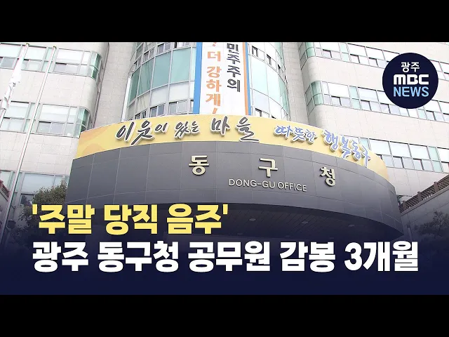 주말 당직 근무를 서다 술을 마신광주 동구청 간부급 공무원에 대해 감봉 징계가 내려졌습니다.광주 동구에 따르면 광주시 인사위원회는 최근 동구청 소속 5급 공무원에 대해 감봉 3개월 처분을 의결했습니다.해당 공무원은 지난달 22일 주간 당직 근무 중 술을 마셨고, 이를 목격한 직원이 구청 게시판에 글을 올리면서 음...