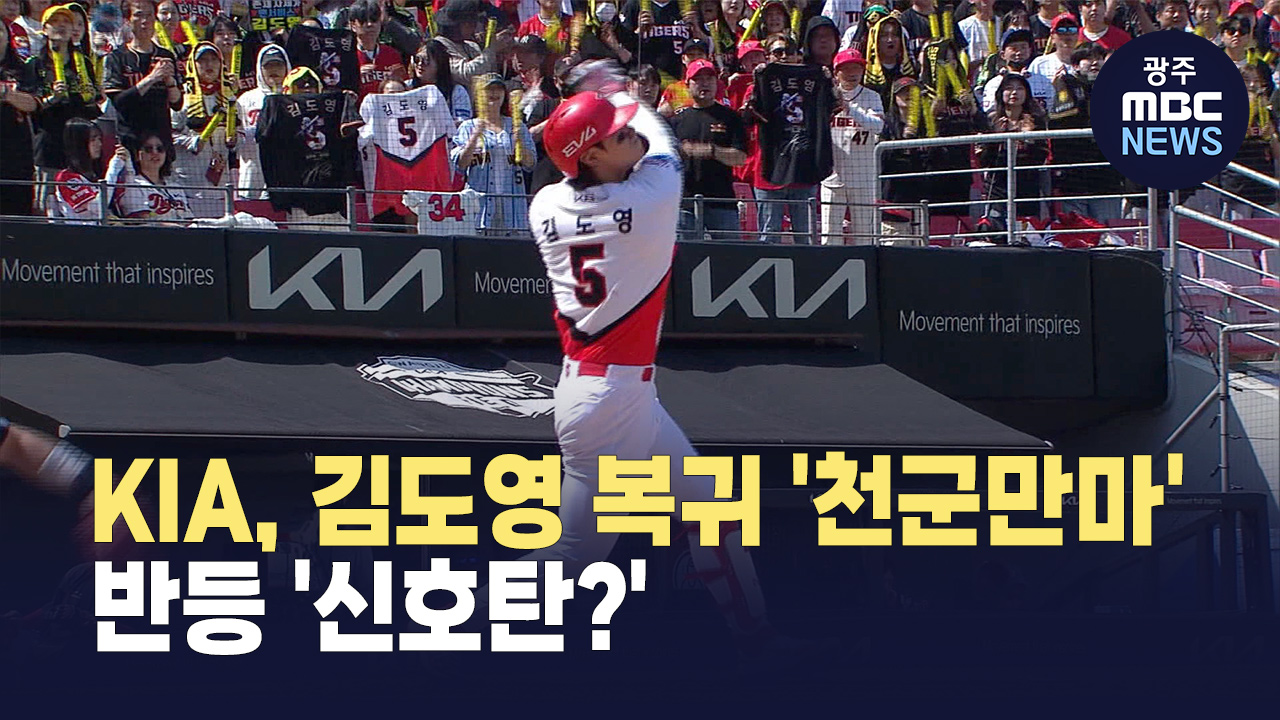 (앵커)기아 타이거즈가 김도영 선수의 복귀로상위권 반등의 신호탄을 쏘아 올렸습니다.김도영 선수는 '도니살' 즉 자신의 애칭처럼슈퍼스타 다운 퍼포먼스를 그대로 보여줬습니다한신구 기자의 보도입니다.(기자)부상 복귀 이후 첫 타석에서 적시타를 때리고다음 날엔 우측 담장을 그대로 넘겨버리고 ...김도영 선수가 기아...
