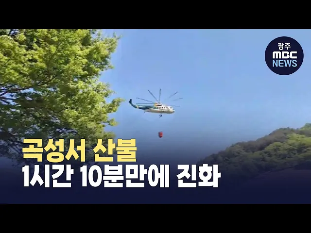 어제(30) 낮 12시 반쯤,곡성군 죽곡면의 한 야산에서 불이 나1시간 10분만에 꺼졌습니다.소방당국은 헬기 4대와 소방차량 10대 등을투입해 산불을 진화했고,이 불로 인명피해는 발생하지 않았습니다.소방당국은 정확한 화재 원인과 재산 피해 규모를 조사 중입니다.