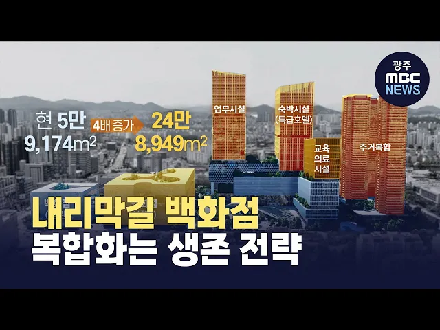 (앵커)광주신세계백화점 확장을 골자로 한터미널 복합화 사업을 둘러싸고광주시와 사업자 사이의 이견이 노출되고 있습니다.이러다가 사업이 백지화되는 건 아닌지우려가 나오고 있는데요.백화점으로서도 시설복합화는 피할 수 없는 선택입니다.윤근수 기자입니다.(기자)백화점의 성장세가 예전같지 않습니다.단지 경기 불...