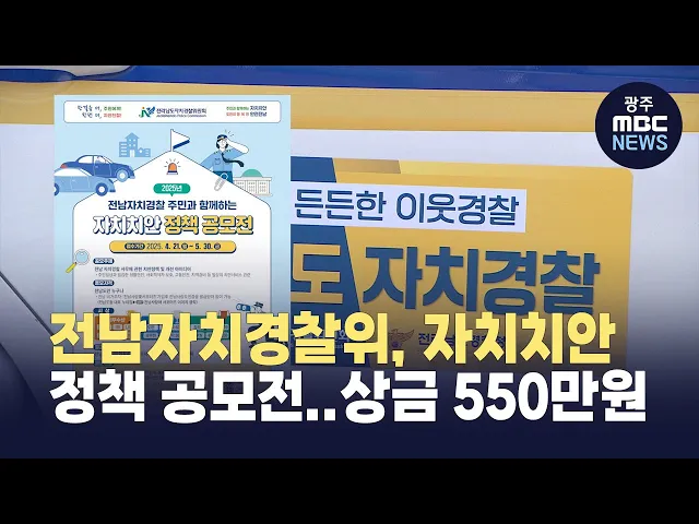 전라남도자치경찰위원회가 상금 550만원 규모의 '주민과 함께하는 자치치안 정책 공모전'을오는 30일까지 개최합니다.응모분야는 생활안전과 사회적약자 보호 등일상 속 자치경찰 사무로 도민 또는 전남사랑도민증 발급자라면 자치경찰위 누리집을 통해 누구나 참여 할 수 있습니다.