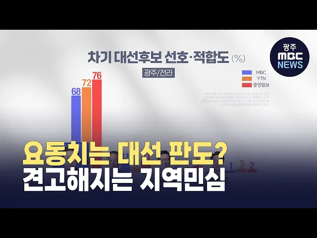 (앵커)사흘뒤면(10일) 6.3 조기대선 공식 후보등록이 시작되지만,선거 판도는 혼란스럽기만 합니다.연일 변수가 속출하고 있어서인데, 도리어 광주, 전남 지역민심은갈수록 견고해지는 거로 나타났습니다.주현정기자입니다. (기자)대법원의 이례적인 파기환송,호남 출신 전직 국무총리들의 직접 등판, 국민의힘 단일화 진통...