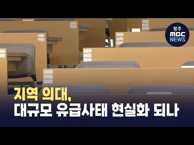 (앵커)전국 의대들이 의대생들 가운데 유급과 제적 처분 등의 대상자를 오늘(8)까지 교육부에 제출합니다.전남대, 조선대 의대의 경우 제적은 없지만대규모 유급 사태가 우려됩니다.보도에 김영창 기자입니다.(기자)평일 낮 시간. 수업이 한창이어야 할 강의실이 텅텅 비어있습니다.빈 의자와 책상, 주인없는 교재만이강의...