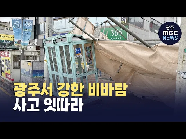 오늘(9) 광주에도 순간풍속이 초속 17m가 넘는 강한 바람이 불면서 사고가 잇따랐습니다.오늘(9) 오후 2시쯤광주 북구 용봉동의 건물 철거 현장에서 공사 비계가 쓰러지면서 인도를 덮쳤지만다행히 인명피해는 없었습니다.앞서 오후 1시 반쯤에는남구 월산4동 행정복지센터 옥상에 있던바닥 파편들이 아래로 떨어지면서지나...