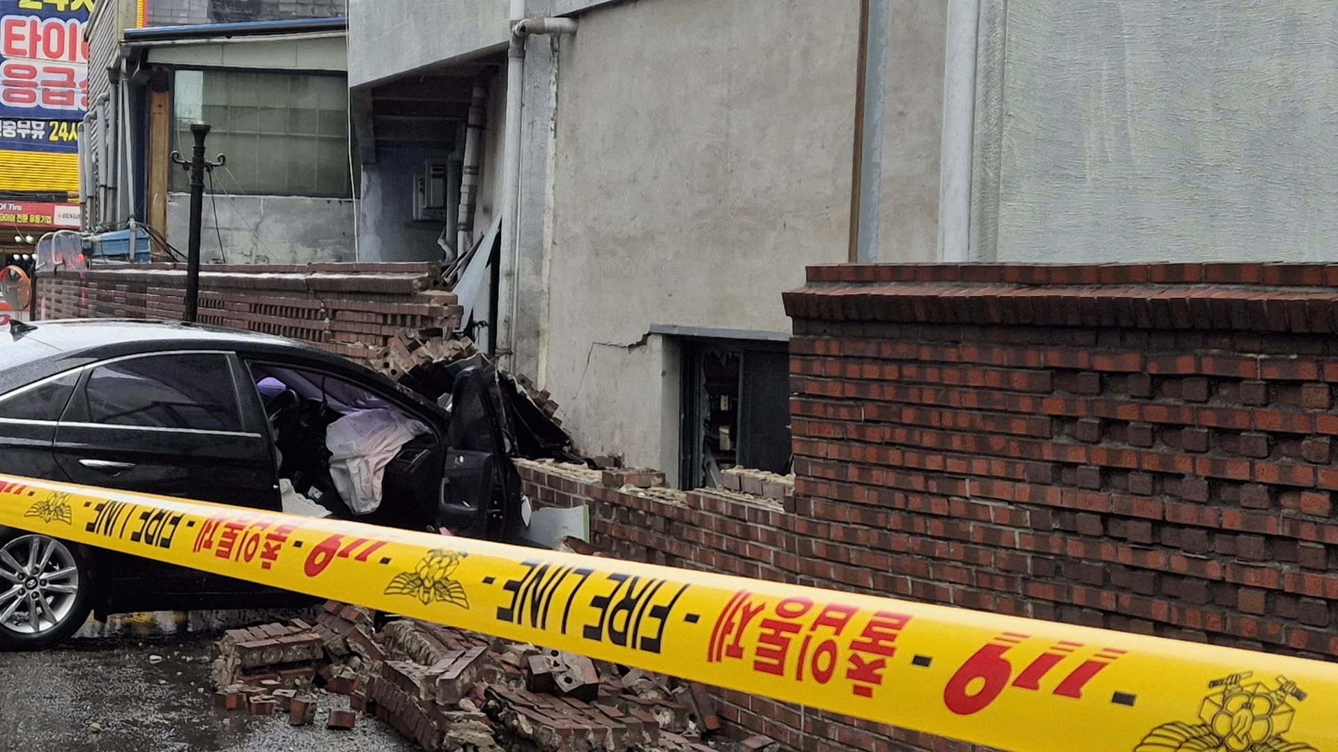 광주서 차량 담벼락 돌진..2명 부상