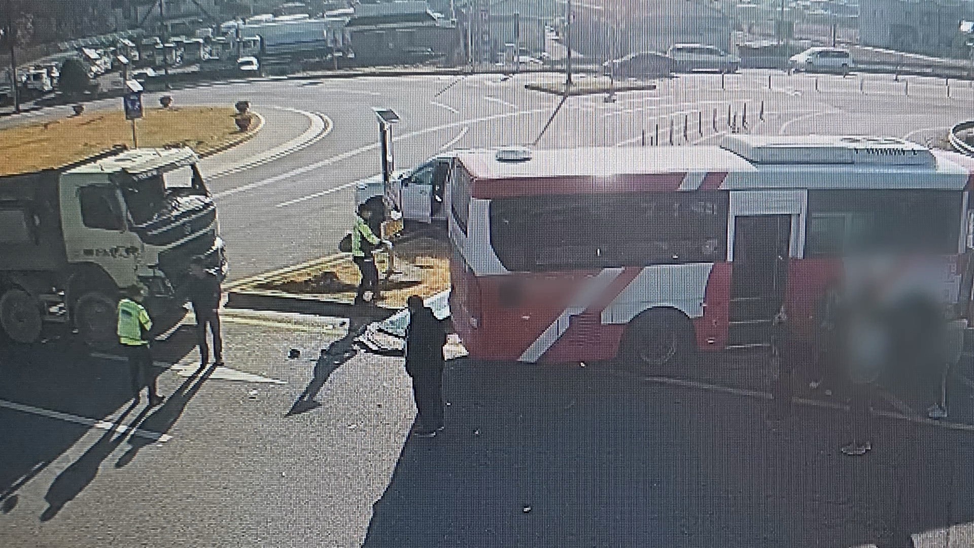 담양서 덤프트럭-시내버스 추돌.. 승객 등 부상