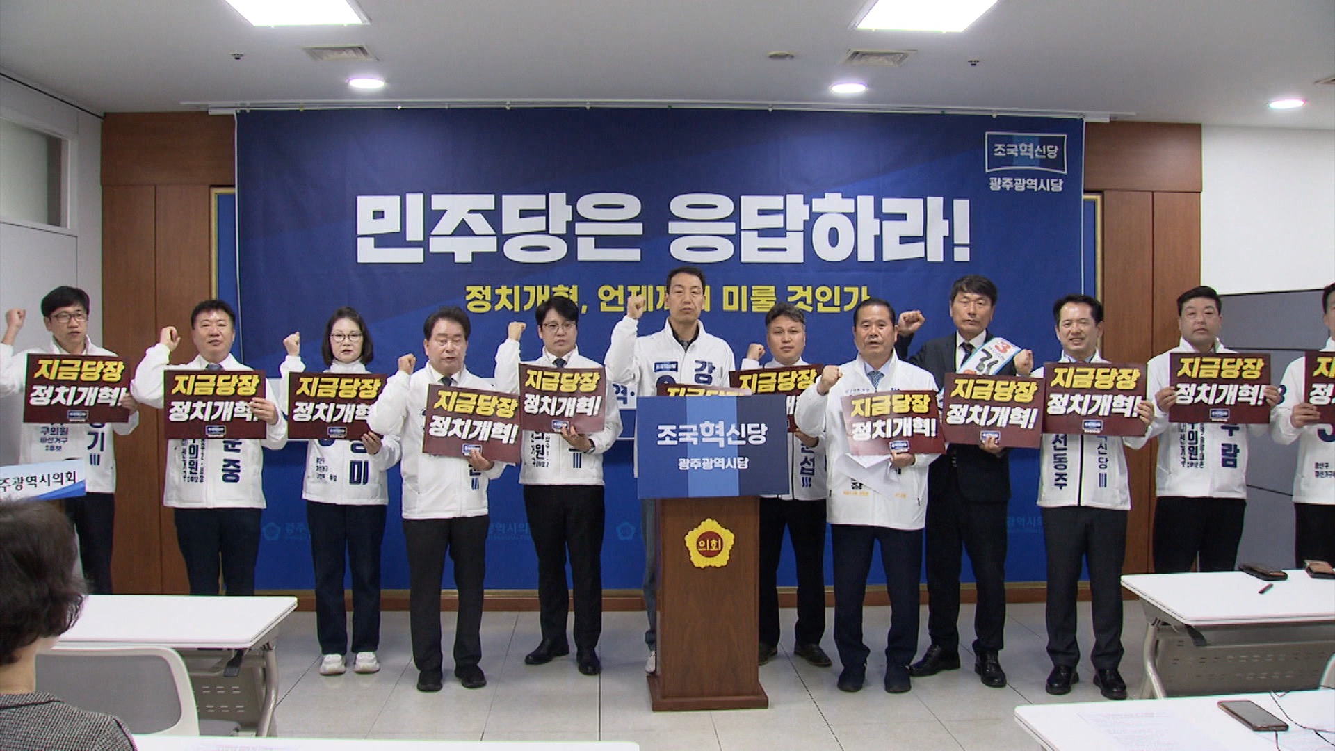 조국혁신당 광주 광역·기초의원 예비후보들은어제(31) 광주시의회에서 기자회견을 열고"민주당은 정치개혁 요구에 응답하라"고 촉구했습니다. 이들은 "어제(31) 사회대개혁위원회가 전남광주특별시 선거제도 개선 간담회를 추진하려 했지만, 민주당의 난색으로 논의 자리마저 무산됐다"라며 "거대 양당이 기득권을 내려놓고...